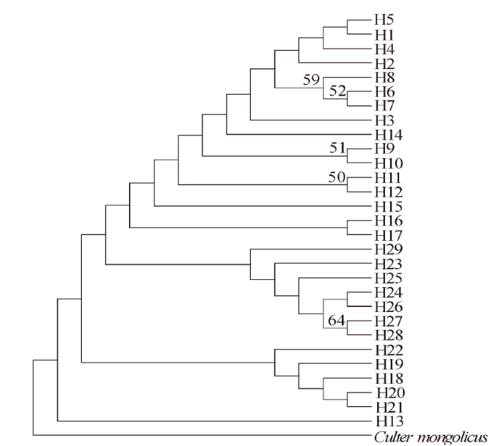 基于 Cyt b 序列的翘嘴鲌单倍型NJ系统树