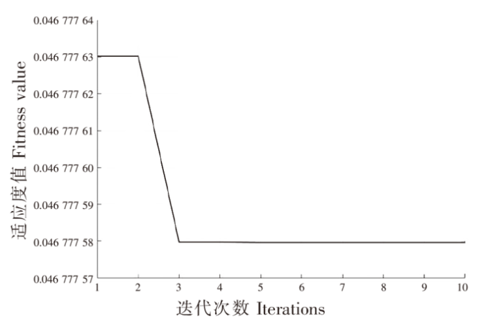 SSA群体适应度随迭代次数变化曲线如图13所示,从第三代开始,群体适应不再下降,即种群已达到最佳适应度。