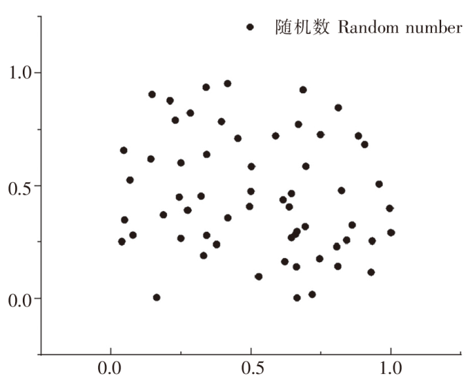 麻雀算法(SSA)初始种群产生方法为构成种群数量(pop)×目标参数(dim)的均匀分布的随机矩阵,这种方法在群体检索过程中会生成均匀分布在一片区域内的点,如图2所示。