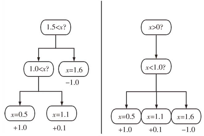 在实际运算中,很多关系无法通过简单累加公式拟合得出,为提高提升树的渐进能力,方程增加了二次项函数,简化后的正则公式为: