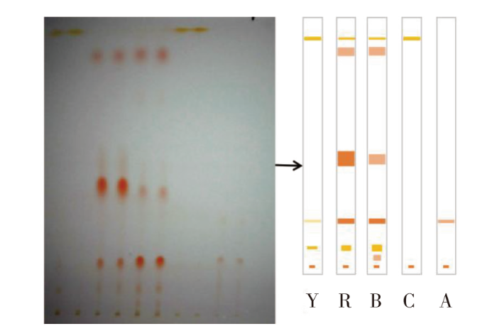 1)根据薄层色谱分析结果选择类胡萝卜素添加剂。